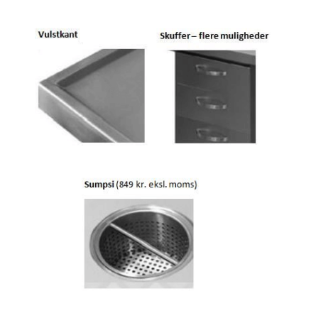 Til alle stålborde der følgende tilkøbes (se billeder af tilvalg i galleriet):