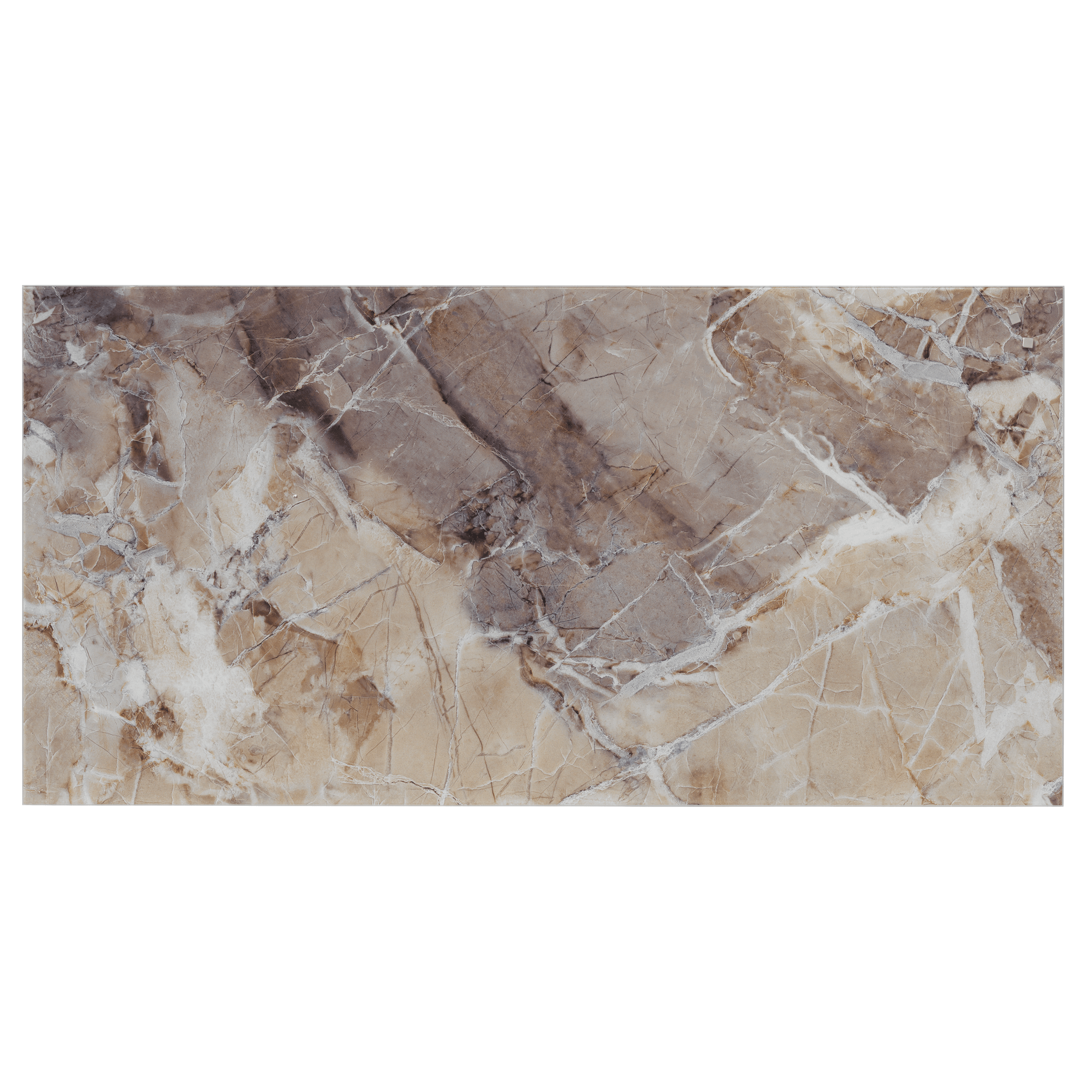 Magnetisk stænkplade i hærdet glas. 100 x 50 cm. med beige marmorprint.