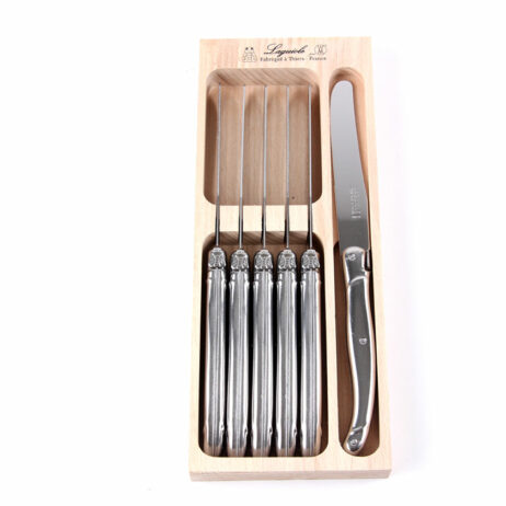 6 stk. Laguiole Debutant bordknive i trækasse – rustfrit stål