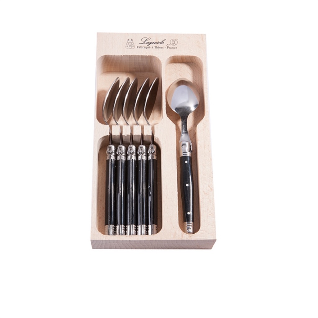 6 stk. Laguiole Debutant kaffeskeer i trækasse – sort