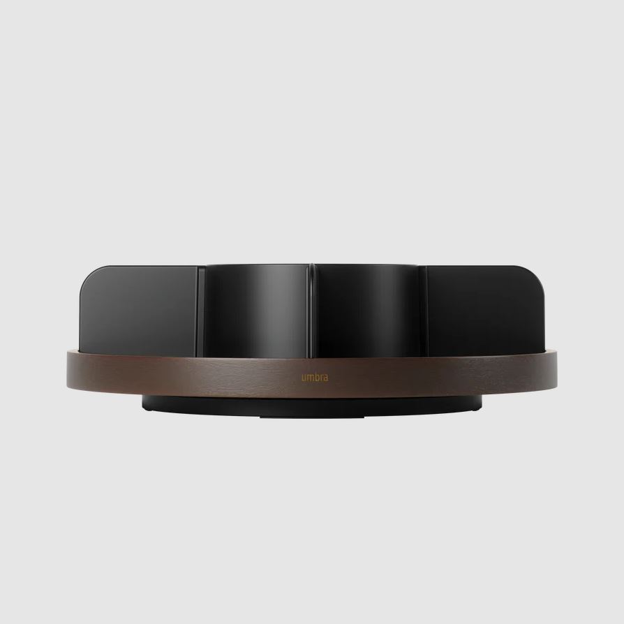Fremstillet af genbrugsplast og bæredygtigt træ, kan denne alsidige, roterende organizer også bruges til rengøringsmidler, skønhedsprodukter og andre daglige ting.