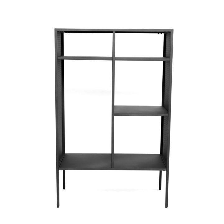 Reolen er fremstillet i malet jern i sort, hvilket giver et robust og holdbart møbel med et moderne og tidløst look. Den slanke konstruktion og de åbne hylder skaber en let og luftig følelse, der passer perfekt ind i både moderne, nordiske og industrielle indretninger. Uanset om den bruges i stuen, kontoret eller entréen, tilbyder Brooks reolen en praktisk og stilfuld opbevaringsløsning, der komplementerer enhver boligindretning.