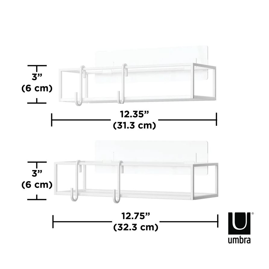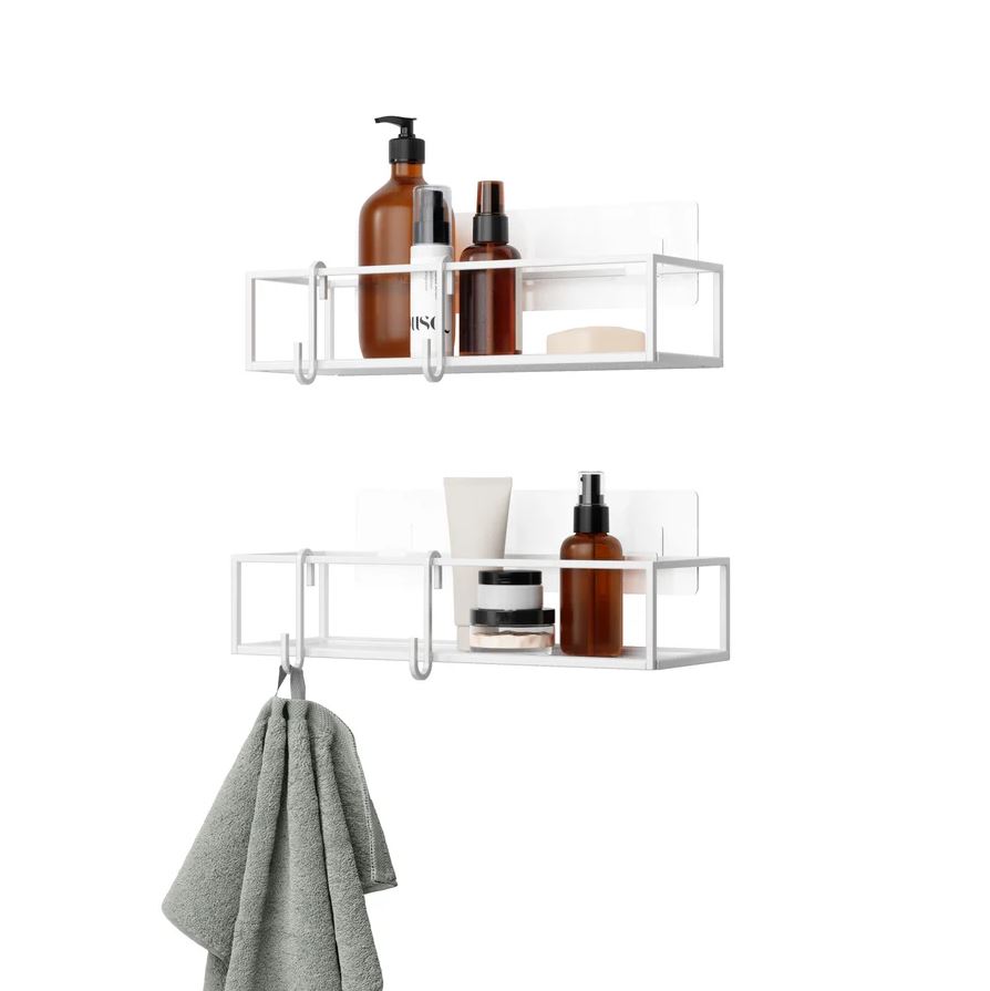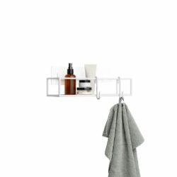 Cubiko brusehylden leveres med to metalophæng, der er ideelle til ophæng af badesvampe, små håndklæder eller andet badeværelsestilbehør.
