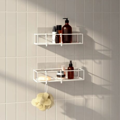 Brusehylden har et enkelt, moderne tråddesign som gør det let at integrere med forskellige indretningsstile.