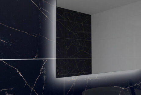 230 V strømforsyning – spejl klar til at blive strømforsynet fra en kontakt indbygget i væggen
