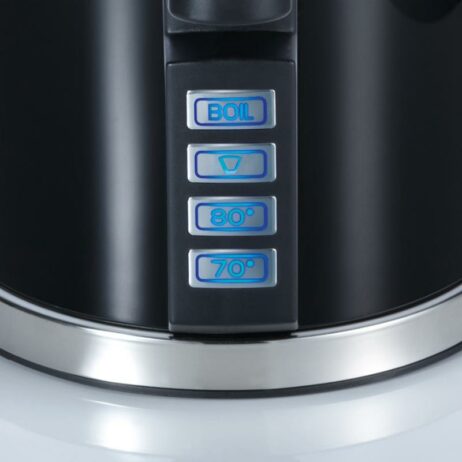 Denne flotte elkedel fra tyske Graef kan indstilles til at opvarme vandet til hhv. 70°C, 80°C, 90°C og 100°. Det er muligt at følge temperaturen løbende på de 4 integrerede knapper på elkedlen. Ved opfyldning er det nemt at se den tydelige påfyldningsindikator indvendigt i elkedlen. Låget løftes ved et let tryk på knappen på toppen af håndtaget.