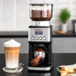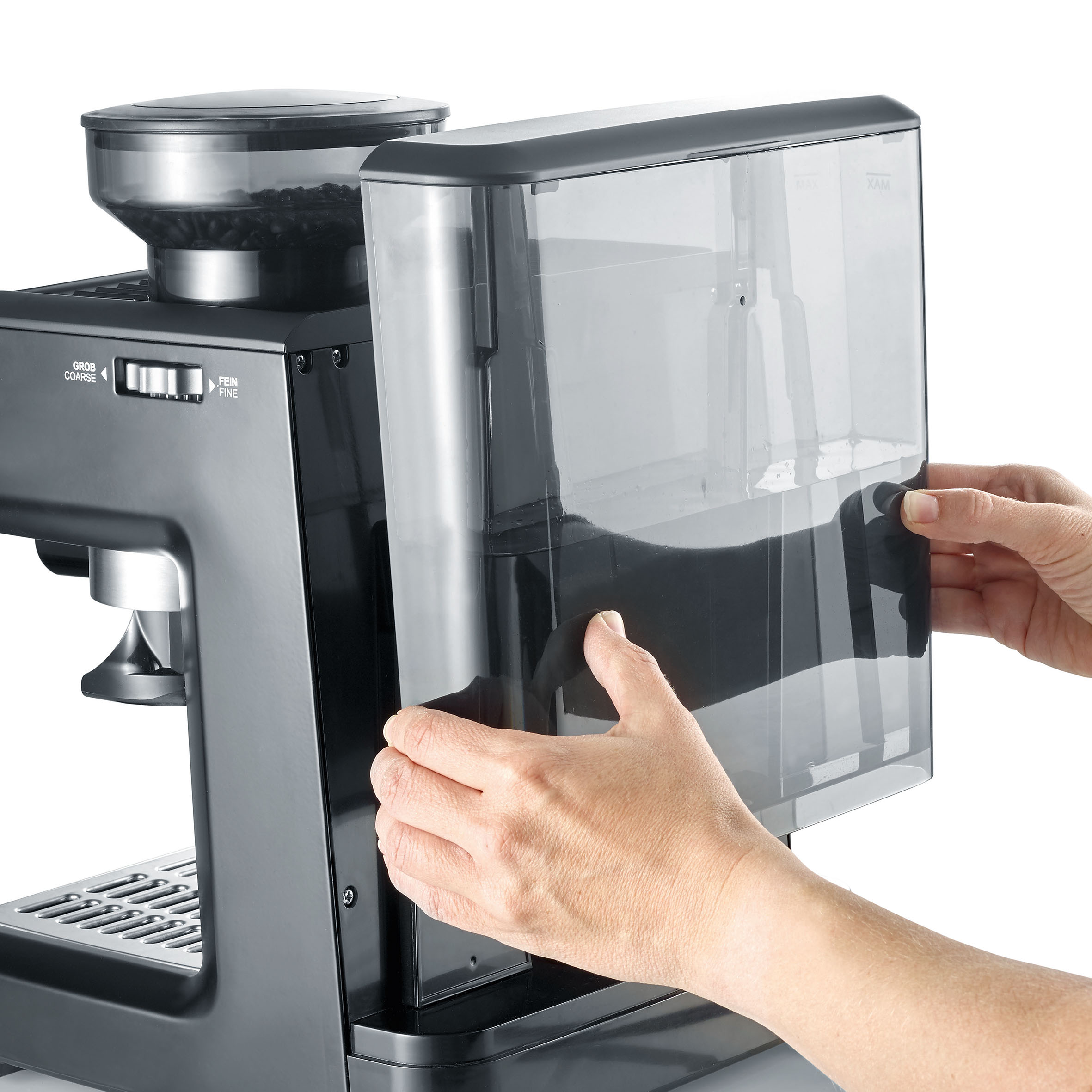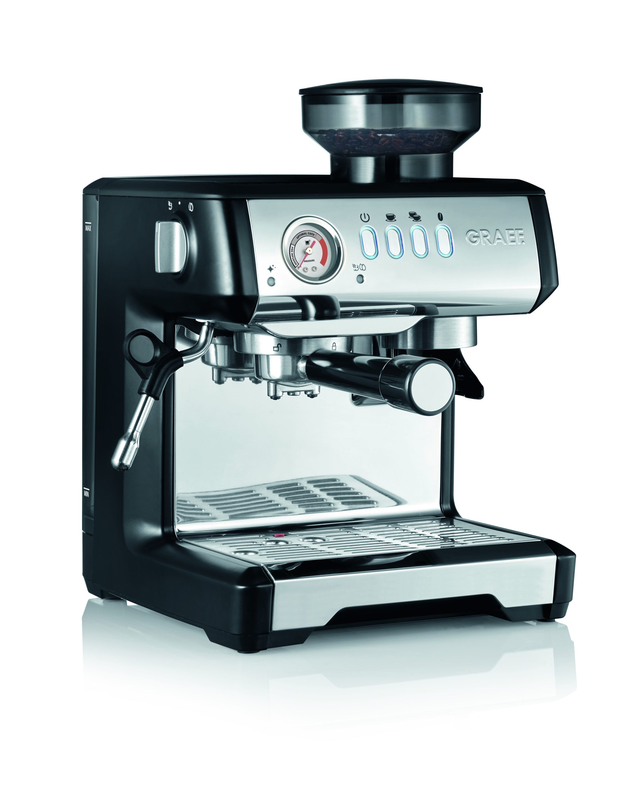 Denne Graef Espressomaskine forbinder et moderne design med gennemtænkte detaljer, kvalitetsmaterialer og nem betjening. Modellen er med integreret kaffekværn – det sparer tid og plads. Den integrerede kaffekværn sørger for at kaffe bliver malet helt perfekt. Faktisk har denne espressomaskine hele 11 malingsgrader du kan vælge mellem – fra fin til grov. Termoblokken er hurtigt klar til at varme vandet op – på den helt energirigtige måde og til den helt rigtige temperatur. Kompakt, hurtig og energibesparende Programmerbare taster til single eller double espresso Integreret kaffekværn 11 forskellige malingsgrader Fylder ikke meget og kan finde plads i de fleste køkkener