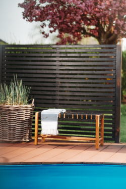 Den elegante bænk er produceret af FSC akacie træ og betrukket med holdbart PE materiale i sort. Træet er oliebehandlet for et elegant look og bedre holdbarhed. De første møbler i NOOKA-serien er alsidige og velegnede til både indendørs og udendørs brug. Lavet af stærkt og holdbart PE-materiale i sort, tilbyder de komfortable sæder og ryglæn til enhver lejlighed. Vi sætter miljøet i fokus, og derfor anvender vi FSC-certificeret akacietræ til at fuldende det smukke design. FSC står for “Forest Stewardship Council” og er en international non-profit organisation, der arbejder for bæredygtig skovforvaltning. Ved at vælge FSC-certificeret træ sikrer vi, at vores produkter kommer fra skove, der er forvaltet med respektfor både mennesker og miljøet, og at der ikke skeroverhøstning eller skader på biodiversiteten.