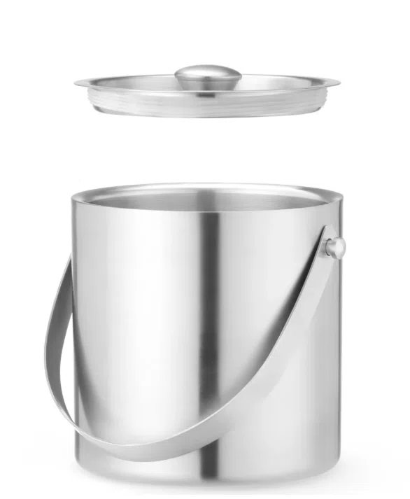 Isspanden er fremstillet i rustfrit stål, hvilket giver en robust og slidstærk kvalitet samt et professionelt udtryk, der passer ind i enhver serveringssituation. Den leveres med låg og praktisk håndtag, som gør det nemt at transportere og beskytte indholdet under brug.
