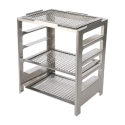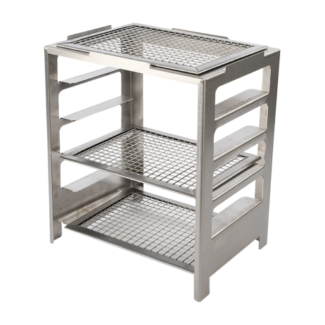 Anvendelse: Dette grillstativ er den ideelle ledsager til din Kasai Konro Yakitori Grill Nano Pro V2. Placer din grill sikkert på stativet, udnyt de to hylder til forberedelse og opbevaring af ingredienser, og grill med præcision og stil.