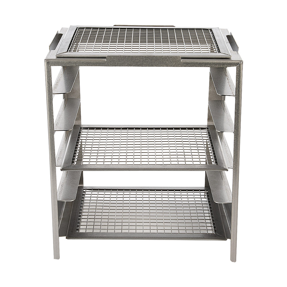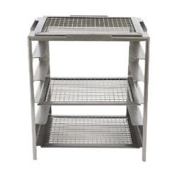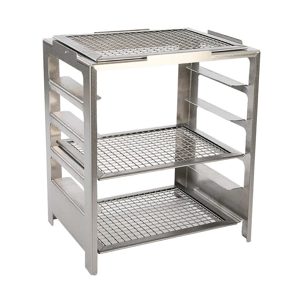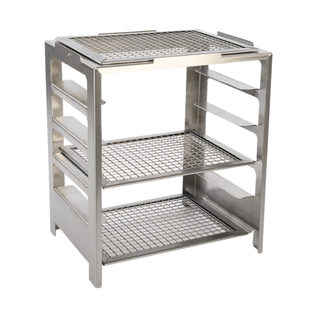 2 Hylder i Rustfrit Stål: Stativet er udstyret med to hylder i rustfrit stål, der giver dig ekstra opbevaringsplads og arbejdsområder til tilberedning af dine grilleretter og tilbehør.