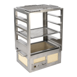 Materialer og Finish: Kasai Konro Robata Grillstativet er lavet af 430-graders rustfrit stål med en 430 grit børstet finish, hvilket giver det en elegant og holdbar overflade. Denne finish er ikke kun smuk, men den beskytter også mod korrosion og pletter.