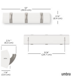 Umbra Flip er en moderne og stilren knagerække, der kombinerer praktisk funktion med et minimalistisk udtryk. Den er designet med individuelle kroge, som kan vippes ud, når de skal bruges, og foldes ind igen, når de ikke er i brug. Det giver et rent og strømlinet look, der passer perfekt ind i både entré, soveværelse, badeværelse eller kontor.