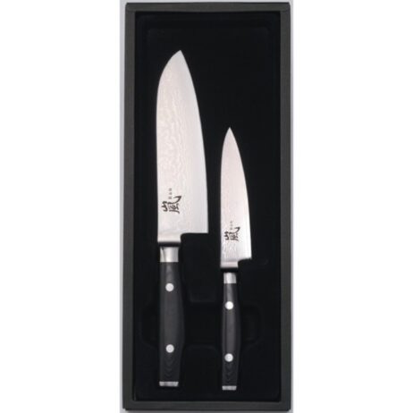 Bestående af 1 stk santokukniv 16,5 cm og 1 stk universalkniv 12 cm.