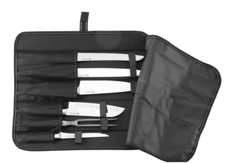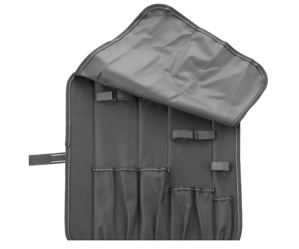 Denne knivtaske er designet med plads til op til 6 knive og giver et overskueligt og sikkert system, hvor knivene ligger stabilt under transport – ideel til både daglig brug og jobrelaterede opgaver uden for køkkenet.