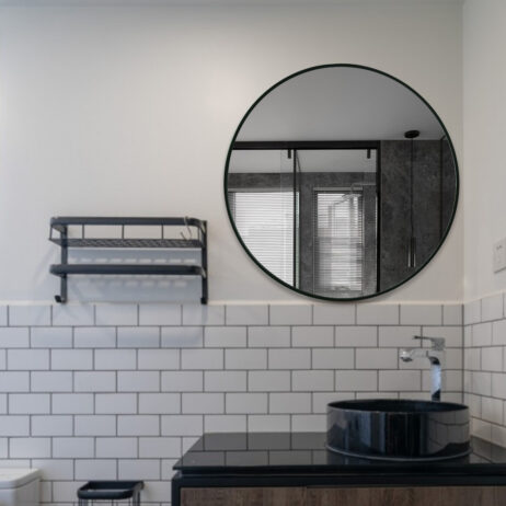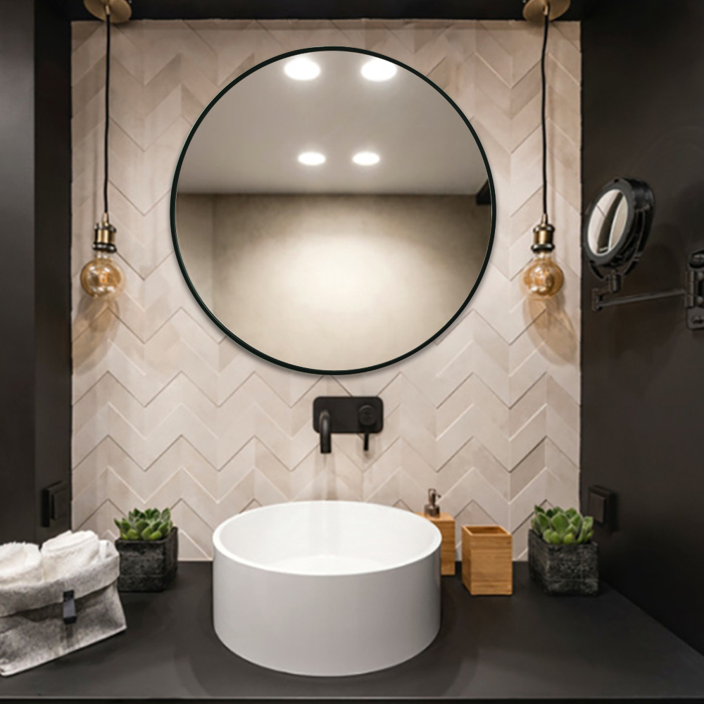 Flot spejl med 7 mm sort aluminimums ramme fra Wallshop’s egen serie af spejle