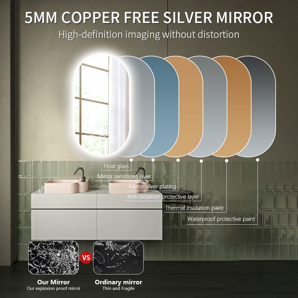 – Flot LED Spejl som leveres i 5mm glastykkelse, som sølv og kobberfrit spejl.