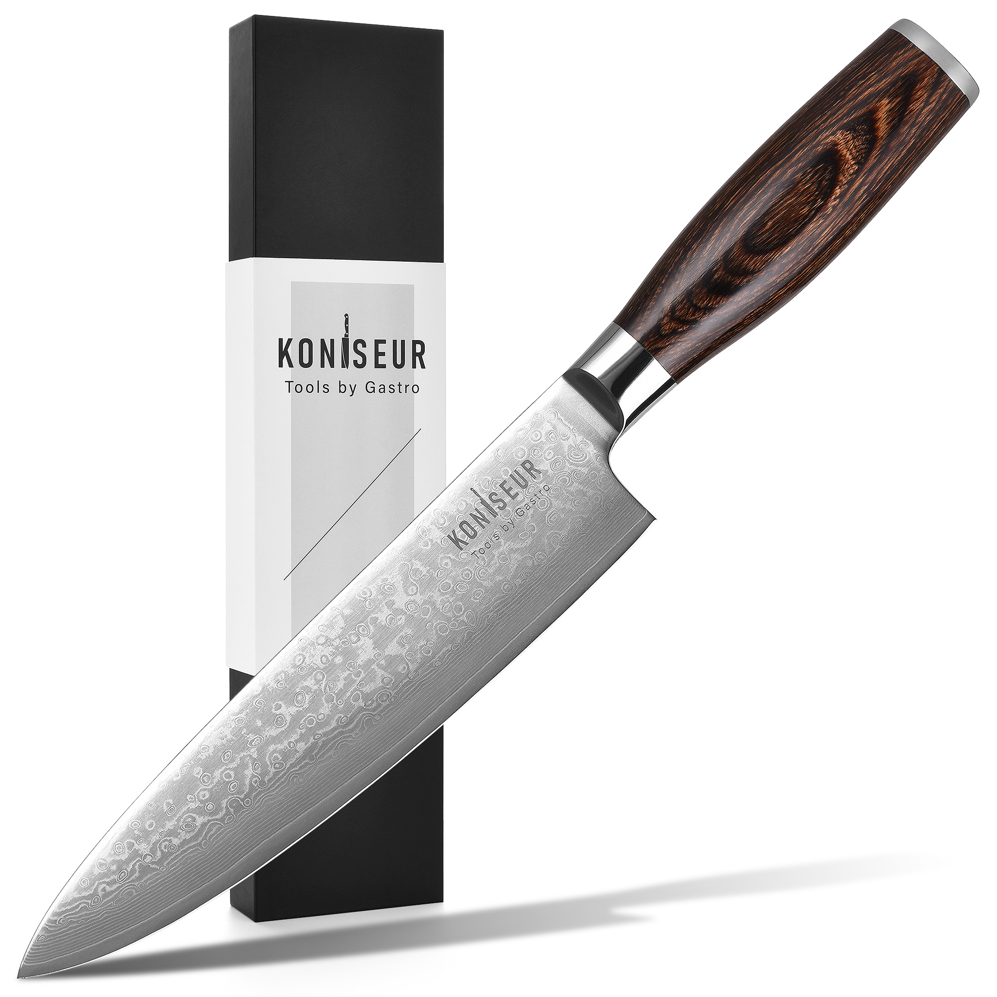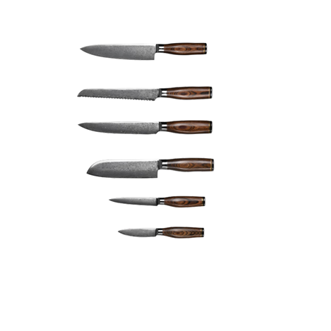 der i samarbejde med gode kunder af huset, og vores producent er udviklet til at passe til ethvert køkkenbehov. Serien indeholder alle de gængse knive der bruges i både et industrikøkken, og et privat køkken. De er derfor både for dig der arbejder professionelt, og for hobbykokken. Knivene er produceret i kvalitetstål – damask, med 67 lag. Skæftet er lavet af pakkawood, med en yderbelægning som gør den mere bakterie af visne. Hårdheden ligger på 59-61 HRC.
