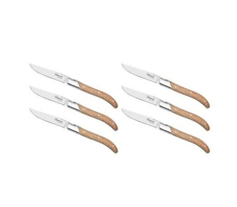 Steak knivene er lavet af 420 rustfrit stål og mærket med et cikade logo. Sættet består af 6 steak knive med håndtag af oak en sort trææske. Det er muligt at få matchende steak gafler til sættet.