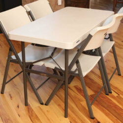 Klapbordet har plads til ca. 4 personer, og er fremstillet i et særdeles stærkt og holdbart materiale, der sikrer at bordet kan bære op til 320kg.