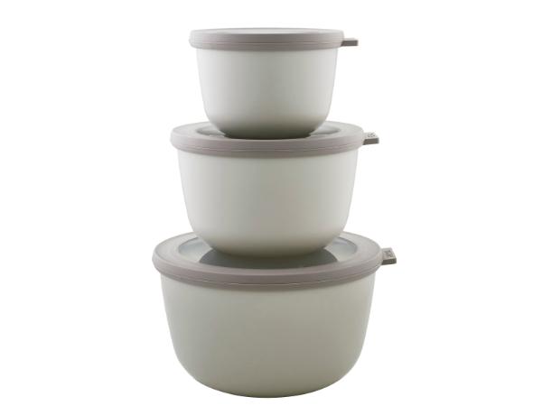 Mepal Cirqula opbevarings- og serveringsskålesæt – rummelig, praktisk og dekorativ i kølige, nordiske farvetoner.