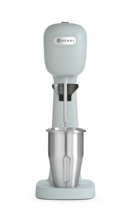 Milkshakemixeren er konstrueret med et hus lavet af ABS-plast, der giver holdbarhed og let vægt. Den er udstyret med en vægtet base for ekstra stabilitet og har gummifødder for at forhindre glidning under brug.