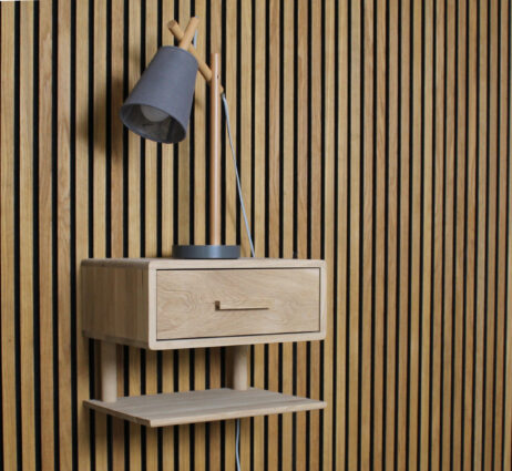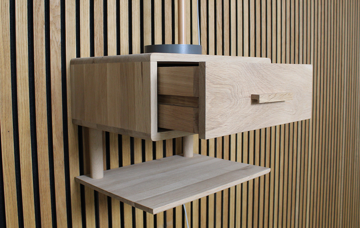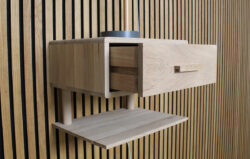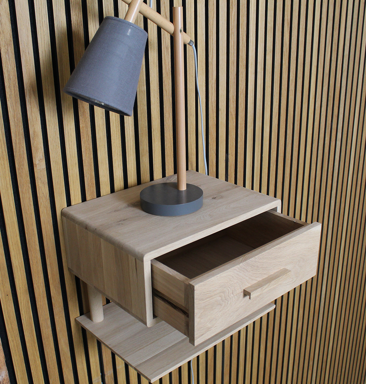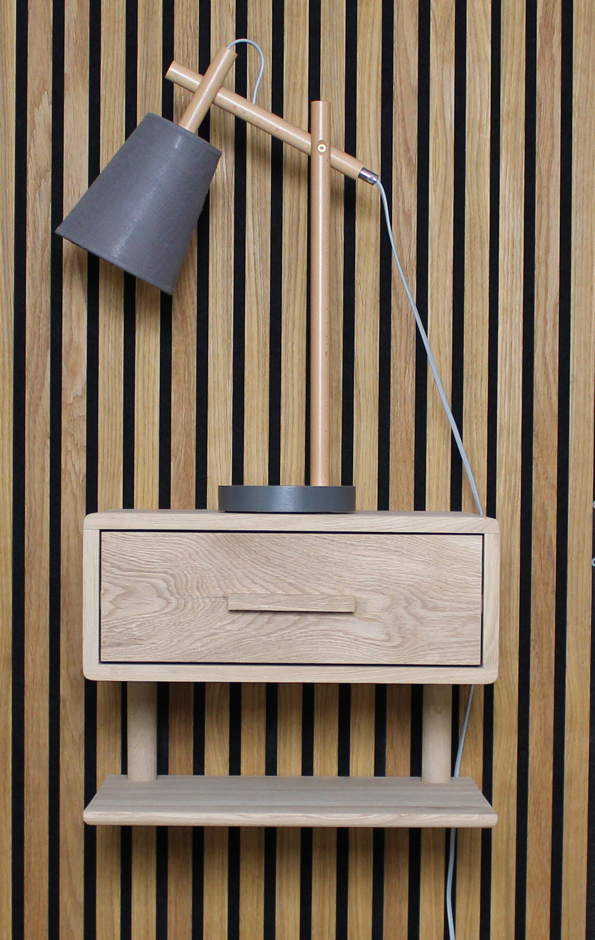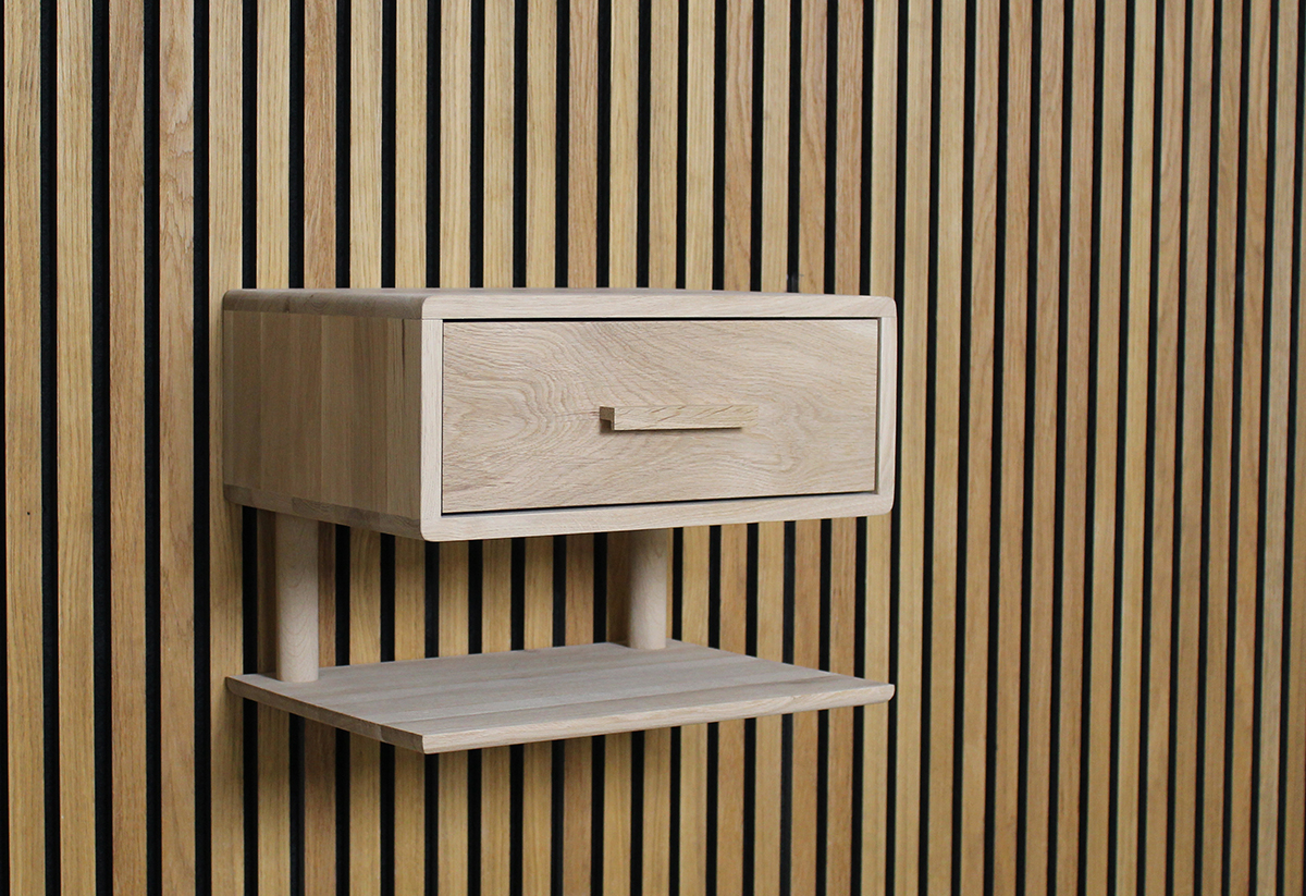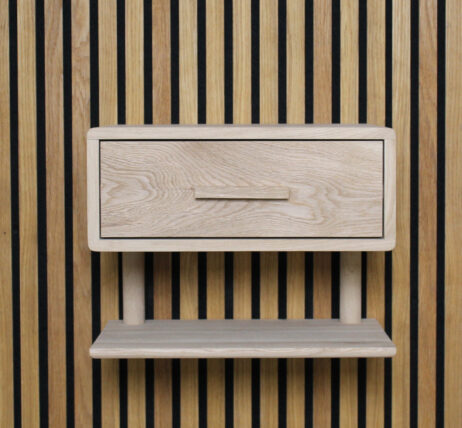 Super flot og enkelt design af vægskuffe. Leveres i ubh. egetræ og kan enten bruges sådan, eller behandles efter ønske med den olie, lak eller behandling man ønsker.