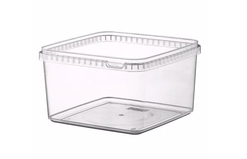 Plastbøtte firkantet klar, 3000 ml u/ låg
