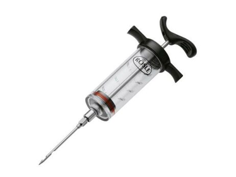 Marinade kan injiceres direkte i kødet med marinadesprøjten: Intensiverer aromaen og forkorter marineringstiden. Kapacitet: 50 ml. Aftagelig nål med hurtiglåsemekanisme.