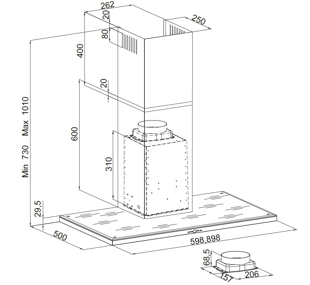 Bredde: 598mm