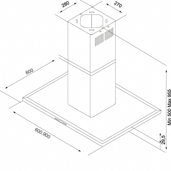 Dybde: 600mm