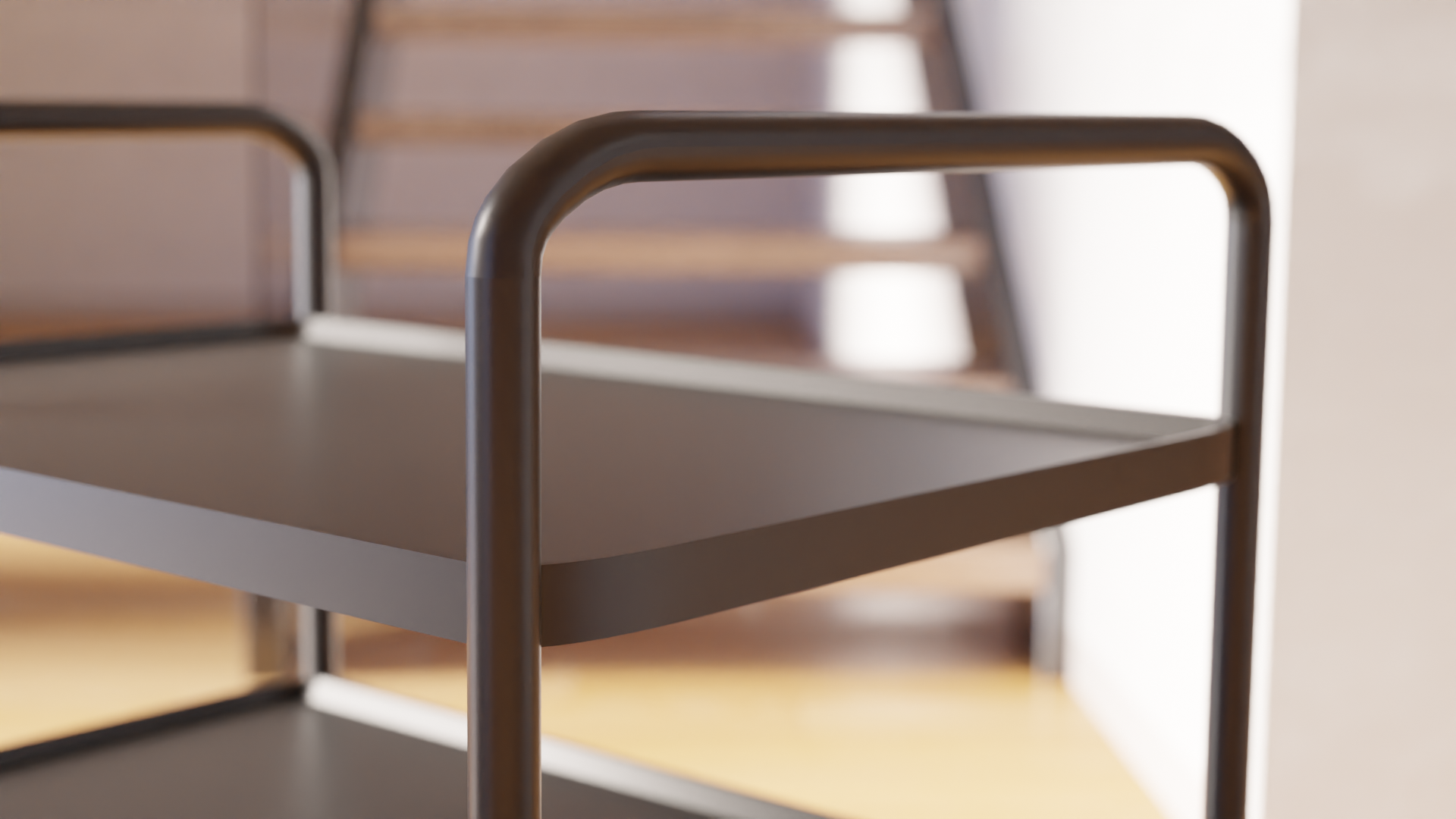 Leveres i sort pulverlarkering. Flot og nem og lade indgå i hjemmets indretning som hjemmebar, pynte reol eller fleksible hjælp til servering.