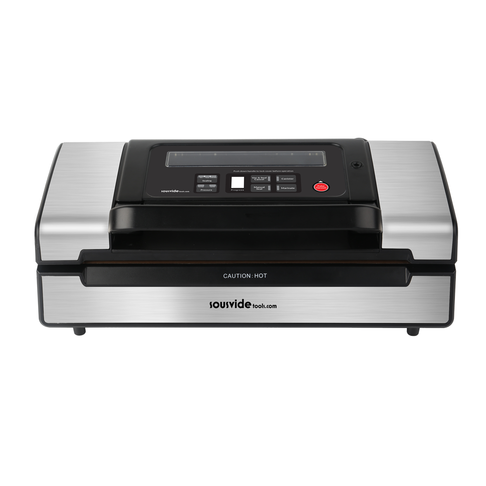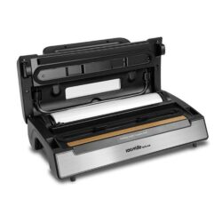 Denne professionelle vakuumpakker fra SousVideTools er en kraftig ekstern model, perfekt til intensive opgaver. Med sin dobbelte kolbepumpe og kraftige motor er den designet til at klare op til 100 vakuumposer i træk, hvilket gør den ideel til hyppig og kontinuerlig brug i både professionelle og private køkkener. Den er udstyret med et patenteret greb, som gør betjeningen enkel og praktisk. Med denne VS520 vakuumpakker får du en pålidelig maskine, der leverer en perfekt forsegling hver gang.