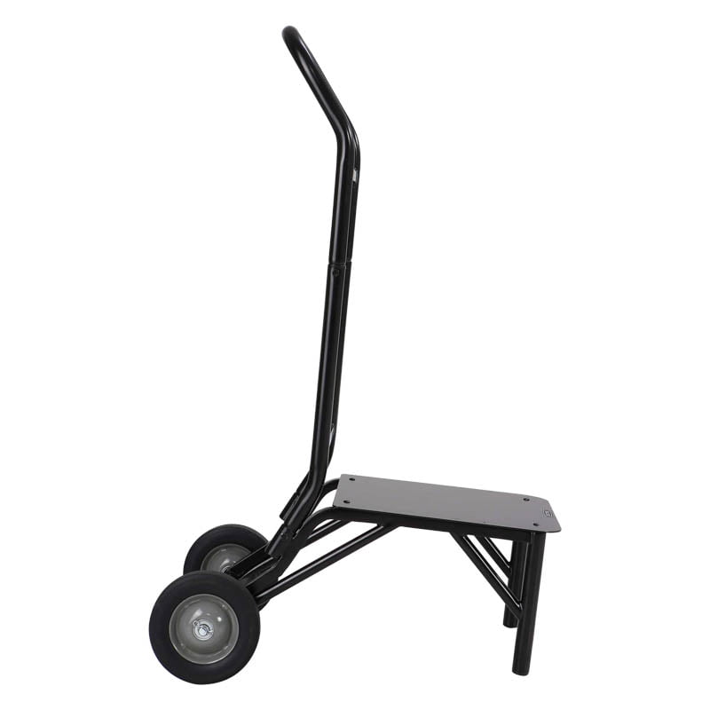Denne model er enkel, men designet med fokus på holdbarhed og funktionalitet. Med dens kraftige løfteplade og lukkede håndtag sikrer den øget fleksibilitet og stabilitet, hvilket gør stolevognen let og sikker at håndtere i enhver situation.