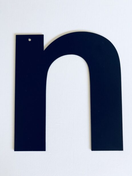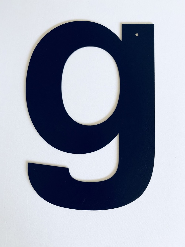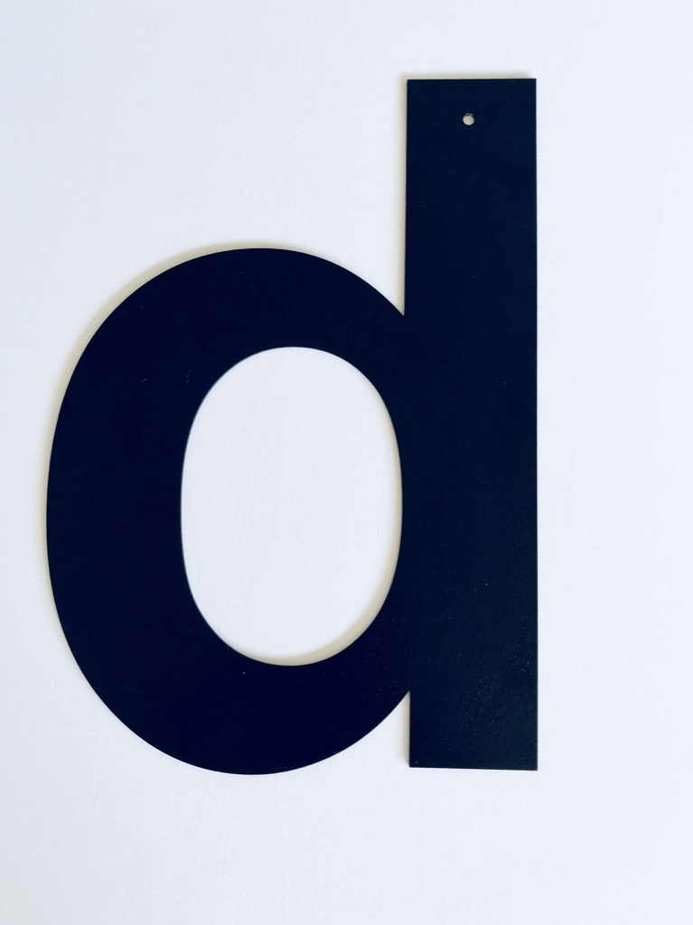 Bogstaverne er 30 cm. høje (har et 5 mm hul som bruges under indfarvningen ved produktion – kan i de fleste tilfælde bruges til ophængning)