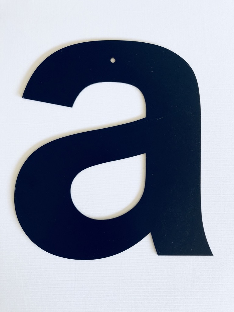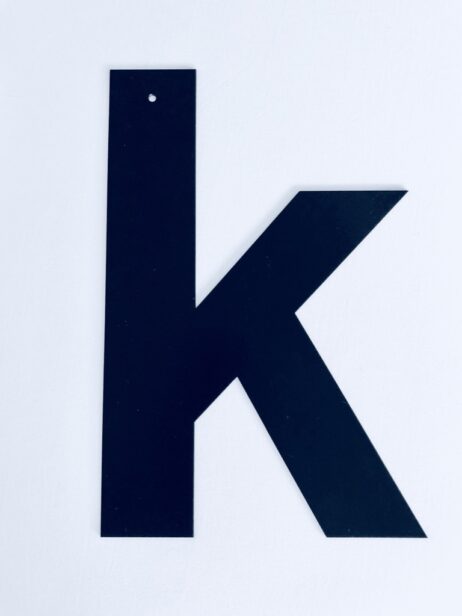 Bogstaverne er 30 cm. høje (har et 5 mm hul som bruges under indfarvningen ved produktion – kan i de fleste tilfælde bruges til ophængning)