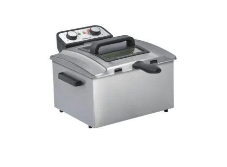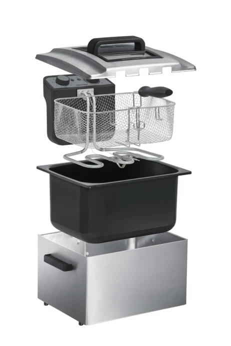 Steba DF300 er en brugervenlig og professionel frituregryde, ideel til den store familie. Den er udstyret med en aftagelig oliebeholder samt et effektivt varmesystem med coolzone, som både forlænger oliens holdbarhed og gør rengøringen nemmere. Med en kapacitet på 5 liter kan den tilberede omkring 1 kg mad (op til maks. 1,5 kg). Der medfølger desuden to separate kurve, så du kan tilberede flere retter samtidig. Frituren er enkel at betjene med trinløs temperaturjustering fra 0 til 190 °C samt en tænd/sluk-knap med indikatorlys.