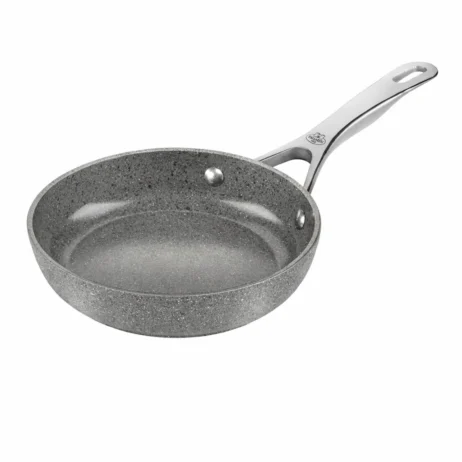 Det ergonomiske håndtag i rustfrit stål er udstyret med stay-cool funktion, så det forbliver behageligt at holde på under madlavningen. Den stilrene Stone Grey-finish giver panden et moderne udtryk, der passer naturligt ind i både klassiske og nutidige køkkener.