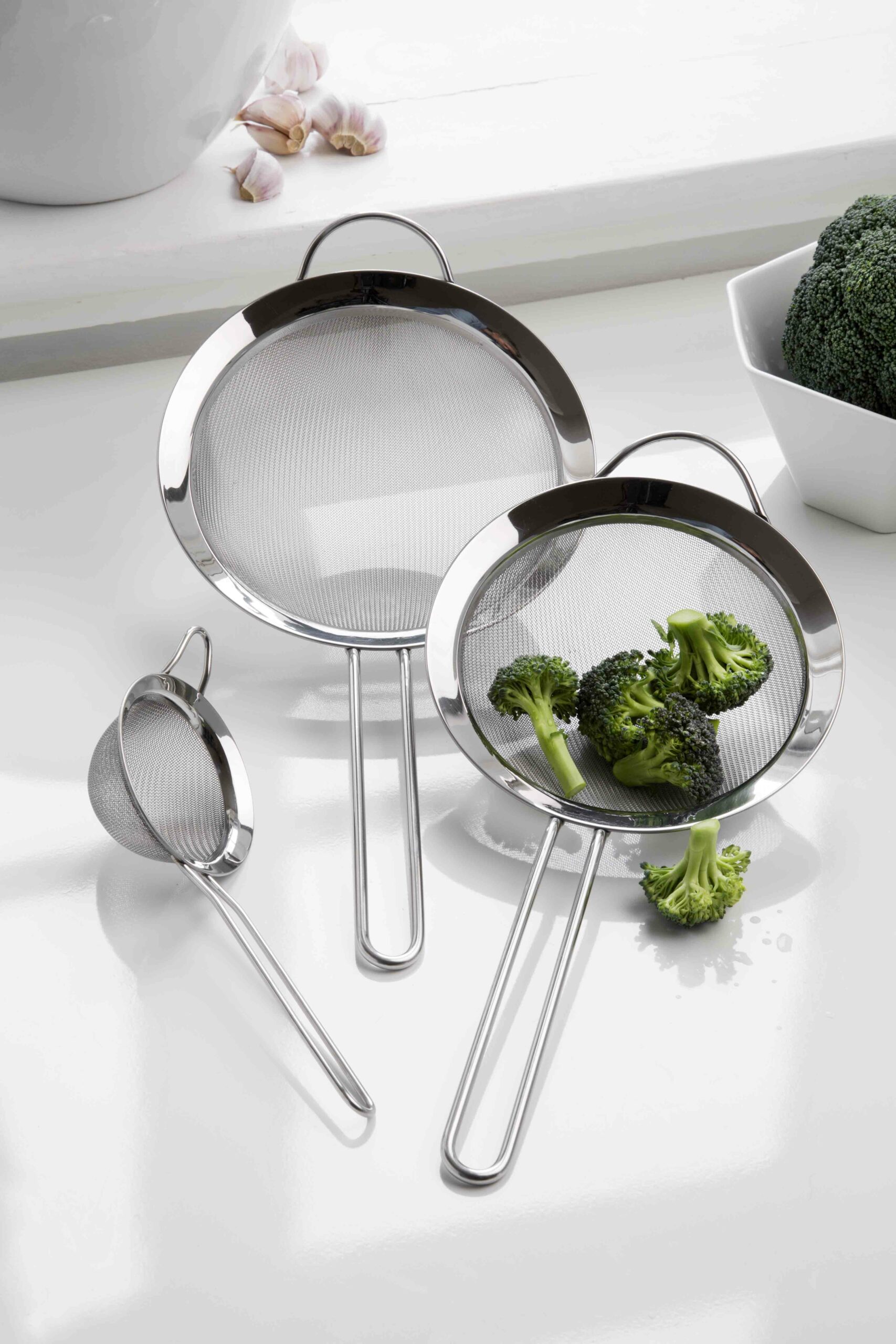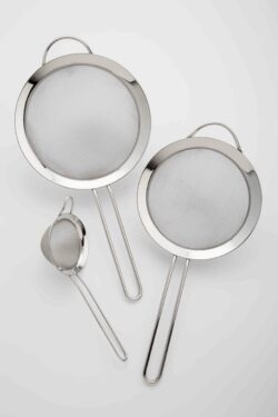 Trådsigtesættet fra Steel Function består af tre sigte med dobbeltnet i forskellige størrelser, hvilket gør det til et alsidigt redskab i ethvert køkken.