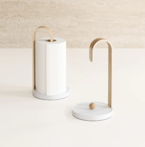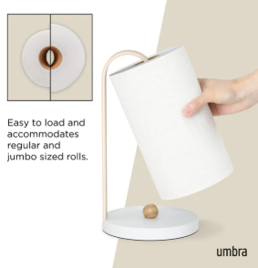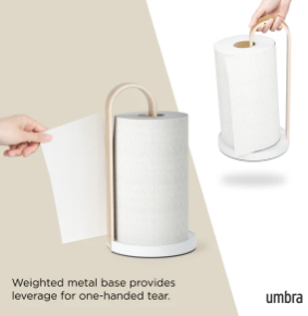 Denne elegante køkkenrulleholder fra Umbra i Bellwood serien kombinerer funktionalitet og et eksklusivt design. Basen er lavet af vægtet stål, som gør at den står fast på bordet, når man taget et stykke køkkenrulle af. Den er nemt at udskifte, da man bare skal løfte op i toppen af træstykket, og så sætte køkkenrullen ind. Den kan holde både en alm. størrelse køkkenrulle, men også de større ruller.