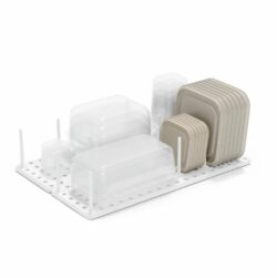 Peggy har et mønster med 108 huller og inkluderer 32 flytbare pinde, hvilket giver hundredvis af mulige konfigurationer og næsten ubegrænsede opbevaringsmuligheder. Hver base kan forlænges med op til 8,25 cm, så den passer perfekt til dine skuffer.