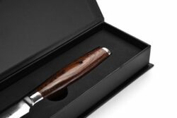 der i samarbejde med gode kunder af huset, og vores producent er udviklet til at passe til ethvert køkkenbehov. Serien indeholder alle de gængse knive der bruges i både et industrikøkken, og et privat køkken. De er derfor både for dig der arbejder professionelt, og for hobbykokken. Knivene er produceret i kvalitetstål – damask, med 67 lag. Skæftet er lavet af pakkawood, med en yderbelægning som gør den mere bakterie af visne. Hårdheden ligger på 59-61 HRC.